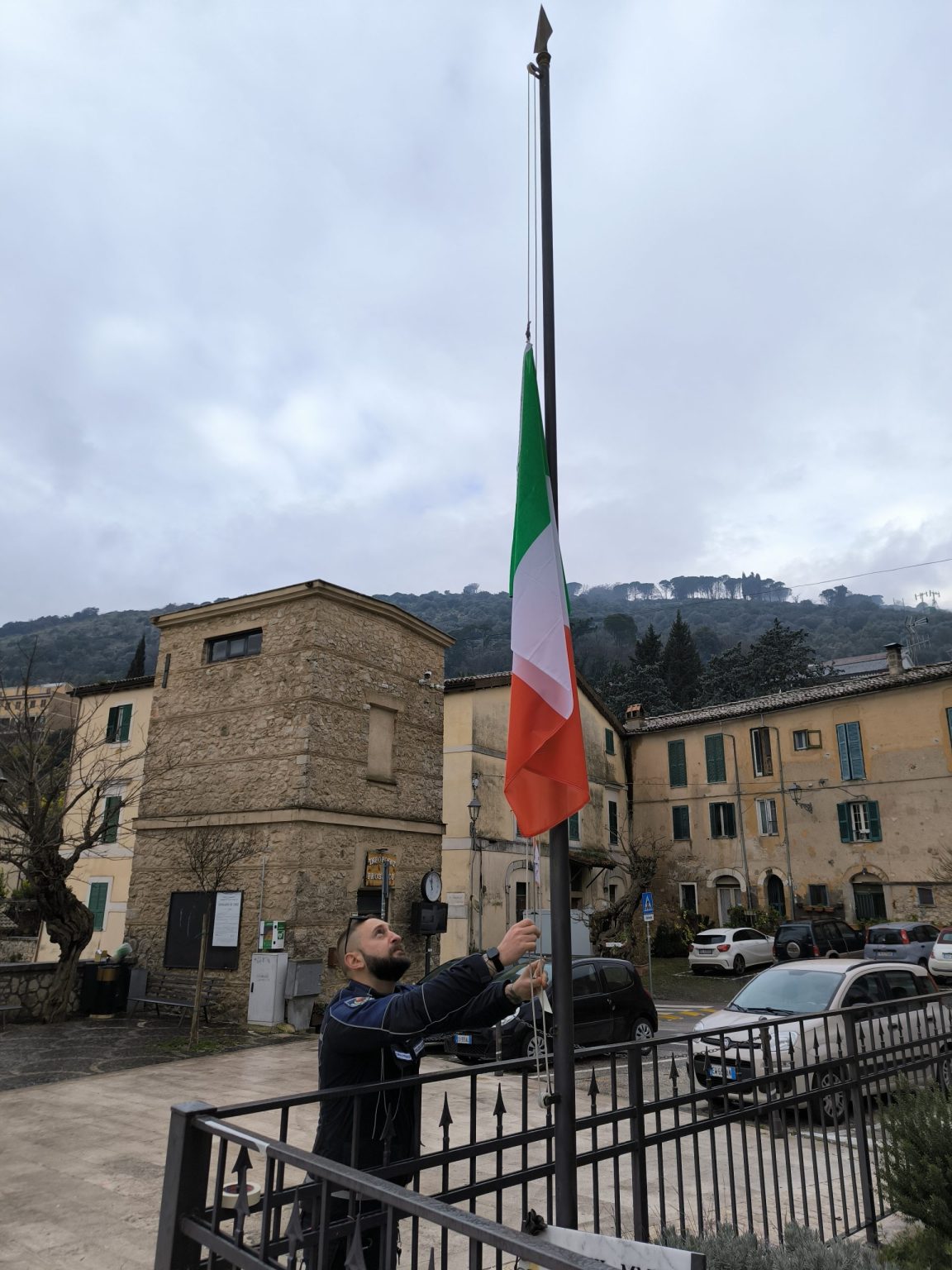 Bandiera nazionale esposta a mezz’asta in segno di memoria delle vittime delle Foibe, dell’esodo Giuliano-Dalmata e delle vicende del confine orientale