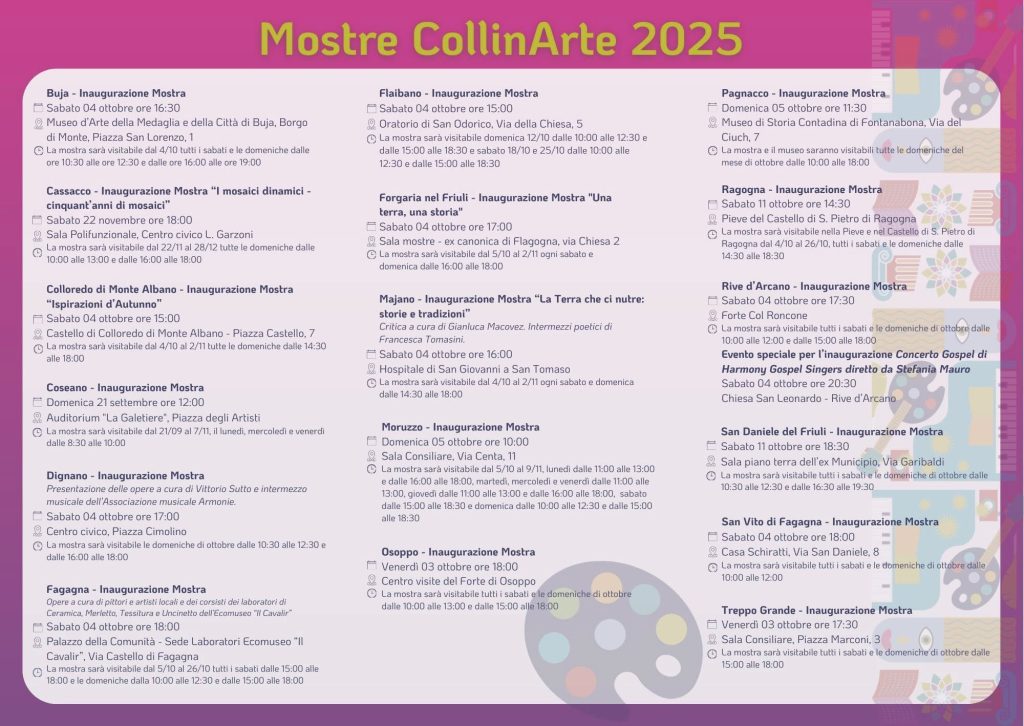 In allegato il programma “COLLINARTE” di tutti i Comuni con le date di inaugurazione. ⤵️