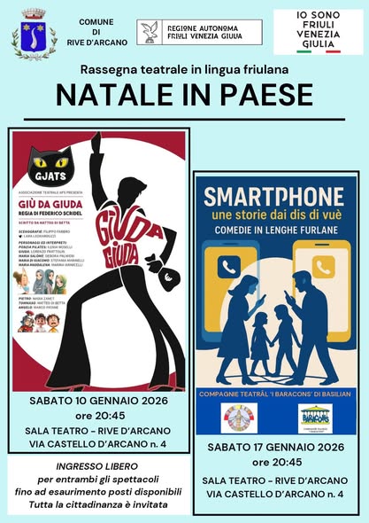 ⭐️ Per continuare a incontrarci in queste festività natalizie 2025, ecco i prossimi 3 appuntamenti culturali, questa volta dedicato al teatro in lingua friulana tutti ospitati presso la sala teatro del centro civico di Rive d’Arcano a partire dalle ore 20.45:
