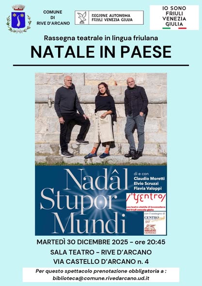 ⚠️⚠️⚠️ Per lo spettacolo del 30 dicembre è obbligatoria la prenotazione all’indirizzo e-mail biblioteca@comune.rivedarcano.ud.it mentre per gli spettacoli del 10 e 17 gennaio l’ingresso alla sala teatro sarà consentito fino all’esaurimento dei posti disponibili.