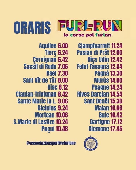 📌 Domenica 12 aprile 2026 scatta la prima edizione di FURL-RUN la corse pal furlan da Aquileia a Gemona del Friuli.
