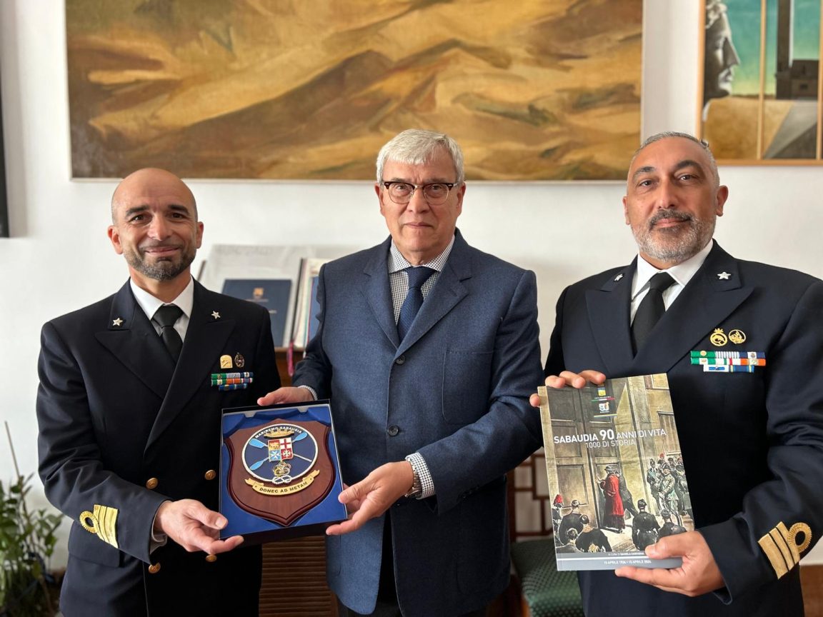 Mattinata di divise e strette di mano al Comune di Sabaudia. Il sindaco Alberto Mosca ha ricevuto il capitano di fregata Massimiliano Caramia, nuovo comandante del Centro Sportivo Remiero della Marina Militare, accompagnato dal suo predecessore Francesco