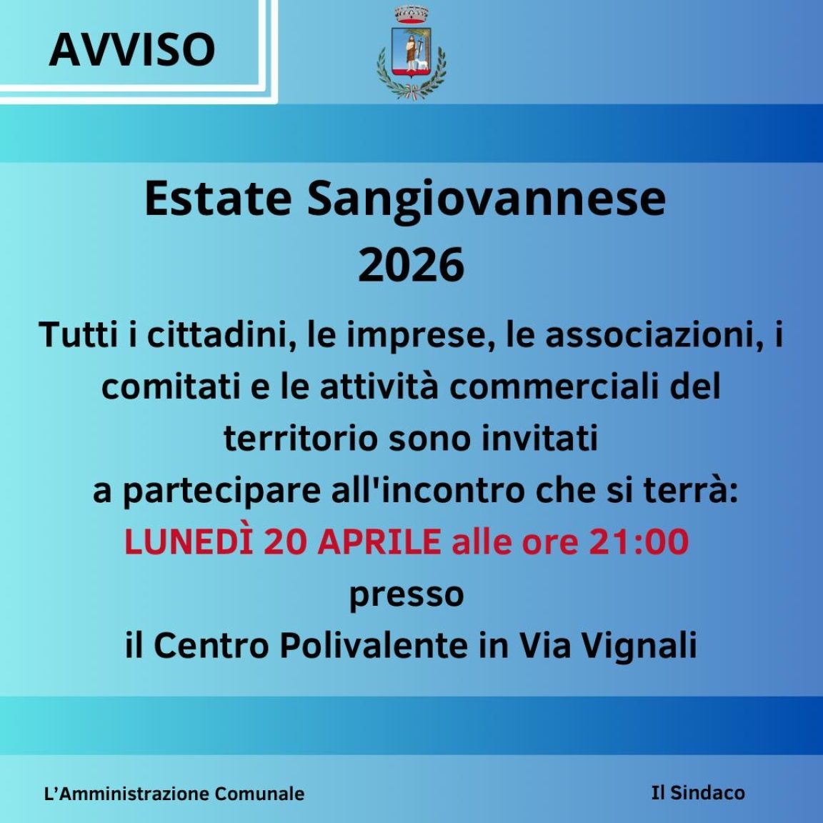 Tutti i cittadini, le imprese, le associazioni, i comitati e le attività commerciali del territorio sono invitati a partecipare all’incontro che si terrà: