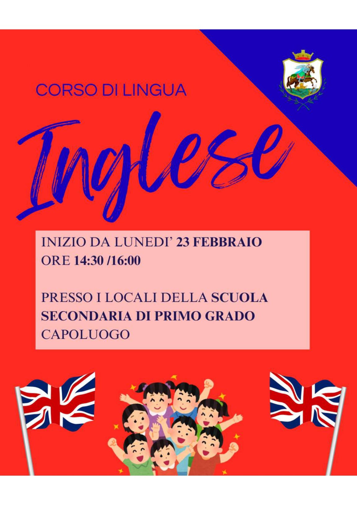 Inizio lezioni corso di inglese lunedì 23 febbraio 2026 ore 14:30-16:00 presso i locali della scuola secondaria di primo grado capoluogo.