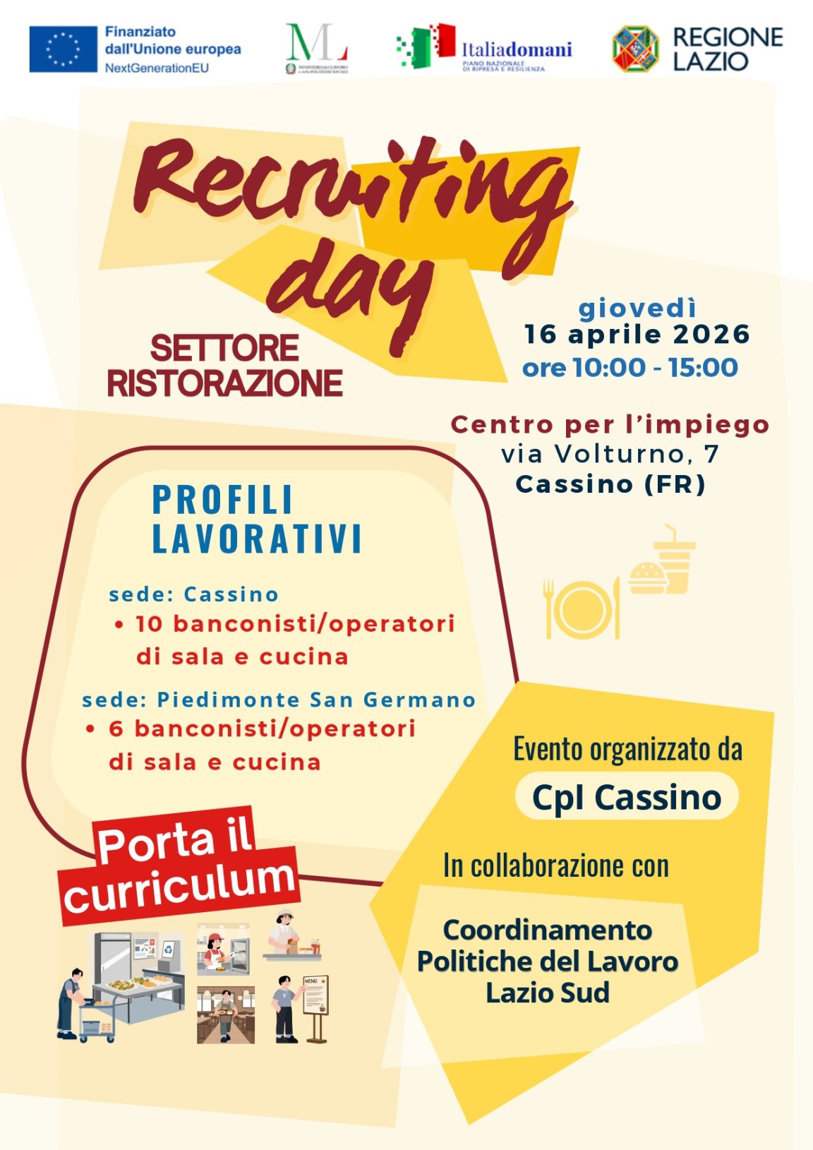 Centro per l’impego di Cassino – Settore ristorazione.