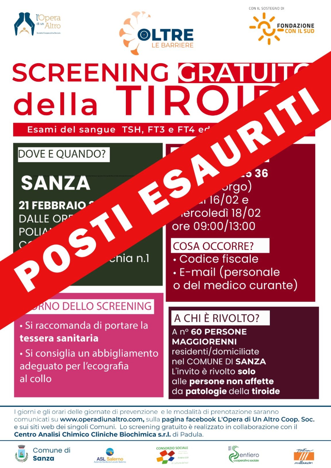 POSTI ESAURITI PER LO SCREENING DEL 21 FEBBRAIO 2026