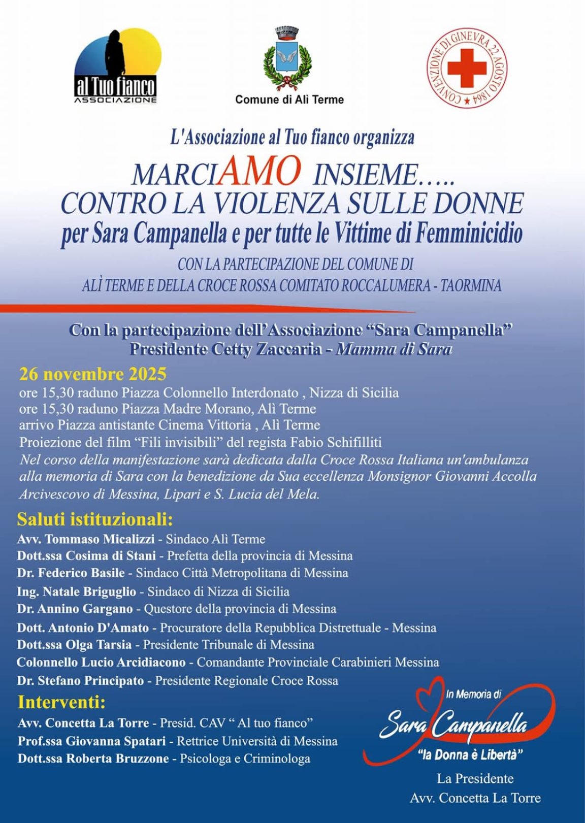 MANIFESTAZIONE “MARCIANO INSIEME” CONTRO LA VIOLENZA SULLE DONNE PER SARA CAMPANELLA E TUTTE LE VITTIME DI FEMMINICIDIO, PROMOSSA DALL’ASSOCIAZIONE “AL TUO FIANCO”