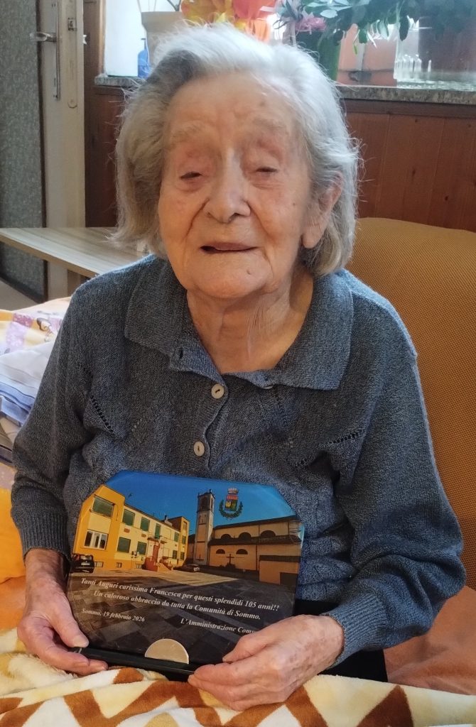 E allora un grande abbraccio da tutta la comunità di Sommo che oggi festeggia la Sig.ra Francesca, insieme alla figlia Sandra e al genero Tino, ai nipoti e pronipoti e all’Amministrazione comunale.