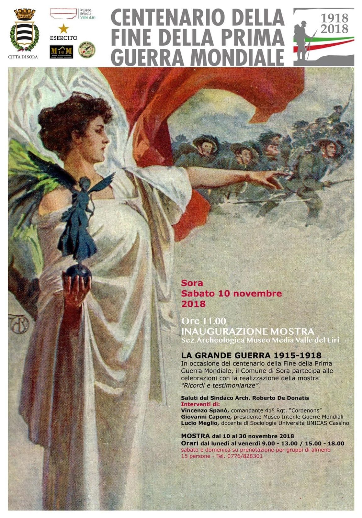 Sabato 10 novembre 2018 ore 11.00 inaugurazione mostra “La grande guerra – ricordi e testimonianze” Museo Civico