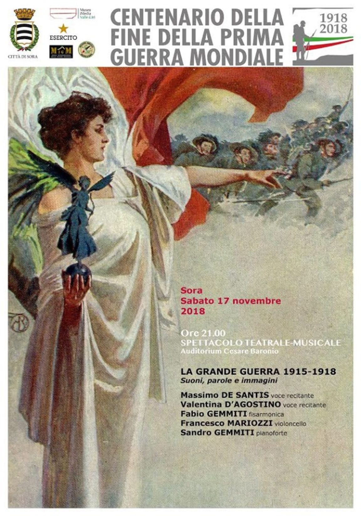 Sabato 17 novembre alle ore 21.00 presso l’Auditorium “Cesare Baronio” andrà in scena uno spettacolo teatrale musicale nell’ambito delle manifestazioni organizzate per il “Centenario della fine della prima guerra mondiale 1918/2018”.