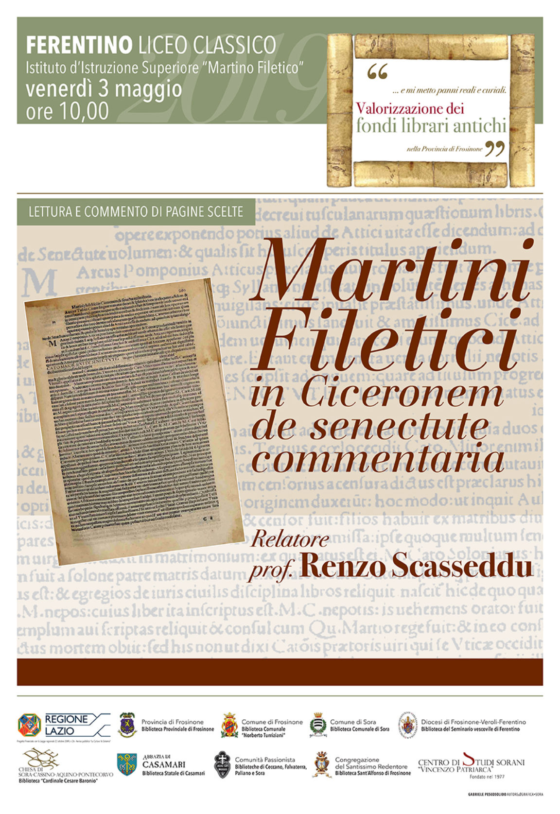 L’appuntamento con il progetto per la Valorizzazione dei fondi librari antichi “…e mi metto panni reali e curiali”, è per venerdì 3 maggio alle ore 10.00 presso il Liceo Classico “Martino Filetico” a Ferentino.