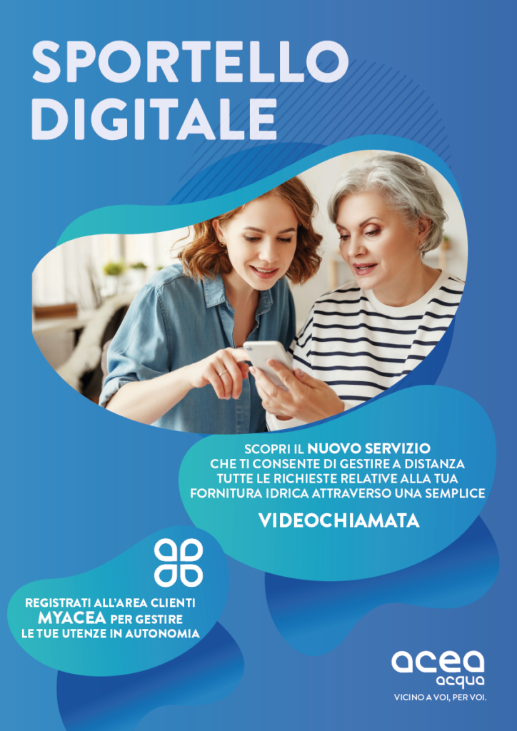 Lo sportello digitale è il nuovo servizio di Acea Ato 2 che consente di gestire a distanza tutte le richieste relative alla propria fornitura idrica attraverso un sistema di videochiamata con un operatore dedicato. Si potranno effettuare comodamente tutte le operazioni tradizionalmente gestite presso gli sportelli fisici. Il servizio è su prenotazione ed è attivo dal lunedì al venerdì dalle ore 9:00 alle ore 17:00.