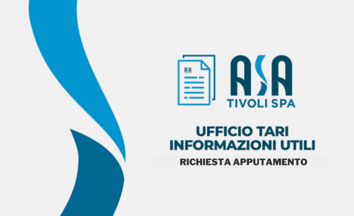 L’ufficio TA.RI., trasferitosi presso Ufficio Tributi del Comune sito in L.go Padre Bischi, snc – Tivoli, riceve ESCLUSIVAMENTE PREVIO APPUNTAMENTO nei seguenti giorni ed orari: