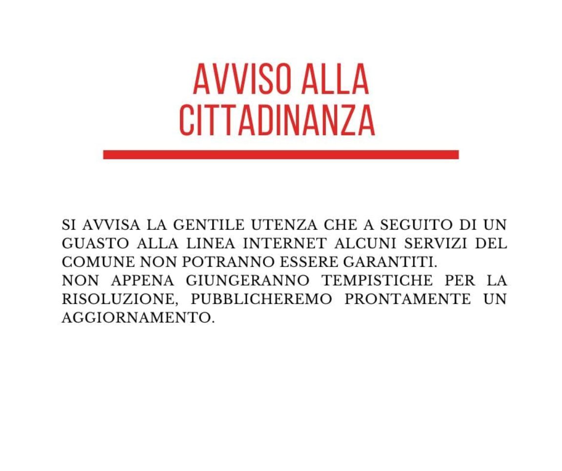 A seguito di un guasto alla linea internet, alcuni servizi del Comune non potranno essere garantiti. Ci scusiamo per il disagio.