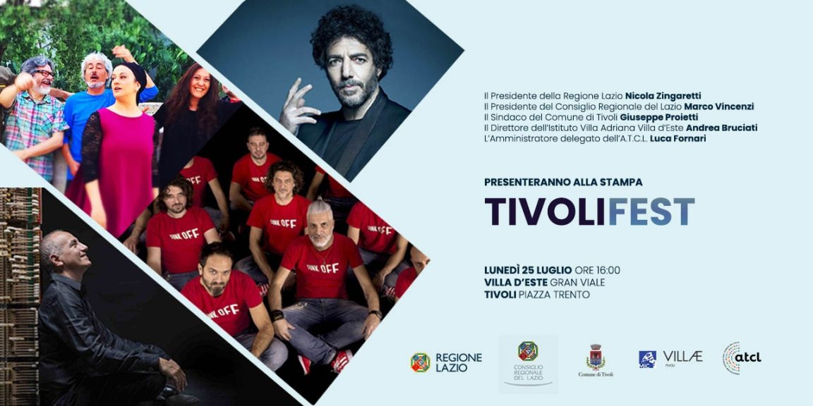 Lunedì 25 luglio alle 16, nel giardino di delizie di Villa d’Este a Tivoli, si terrà la conferenza stampa per presentare il “Tivoli Fest”, rassegna musicale che inizierà il 29 luglio e si concluderà il 1 agosto. Ogni giorno un artista diverso: Danilo Rea, gli Officina Zoe, i Funk Off e in chiusura di kermesse Max Gazzè. I musicisti si esibiranno in palcoscenici d’eccezione: a Villa Adriana, a Villa d’Este e nel centro storico di Tivoli (da piazza Garibaldi a piazza Rivarola). I concerti saranno gratuiti, previa prenotazione.