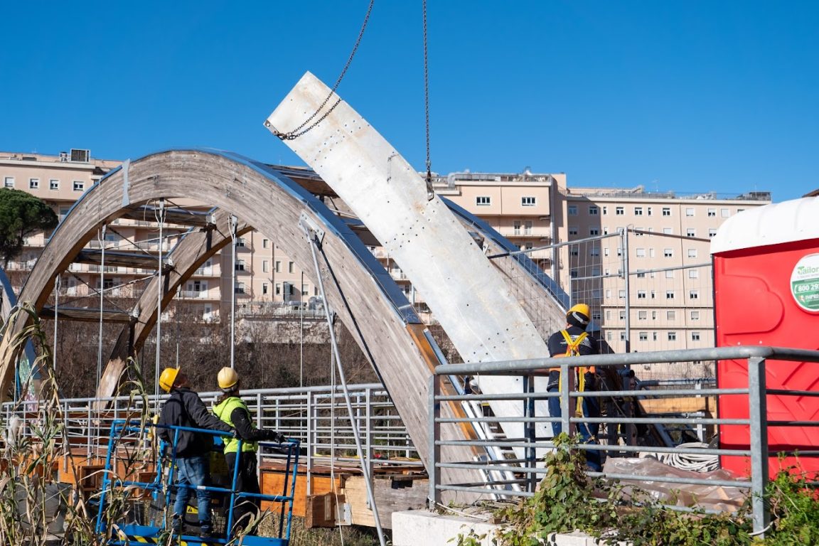 Sono in fase di completamento gli interventi di manutenzione straordinaria sul Ponte della Pace, programmati nel 2021 e avviati solo nell’agosto 2022 dopo l’incendio sviluppatesi in data 18 luglio 2022 che ha interessato alcuni punti della parte terminale della struttura, lato stazione ferroviaria.