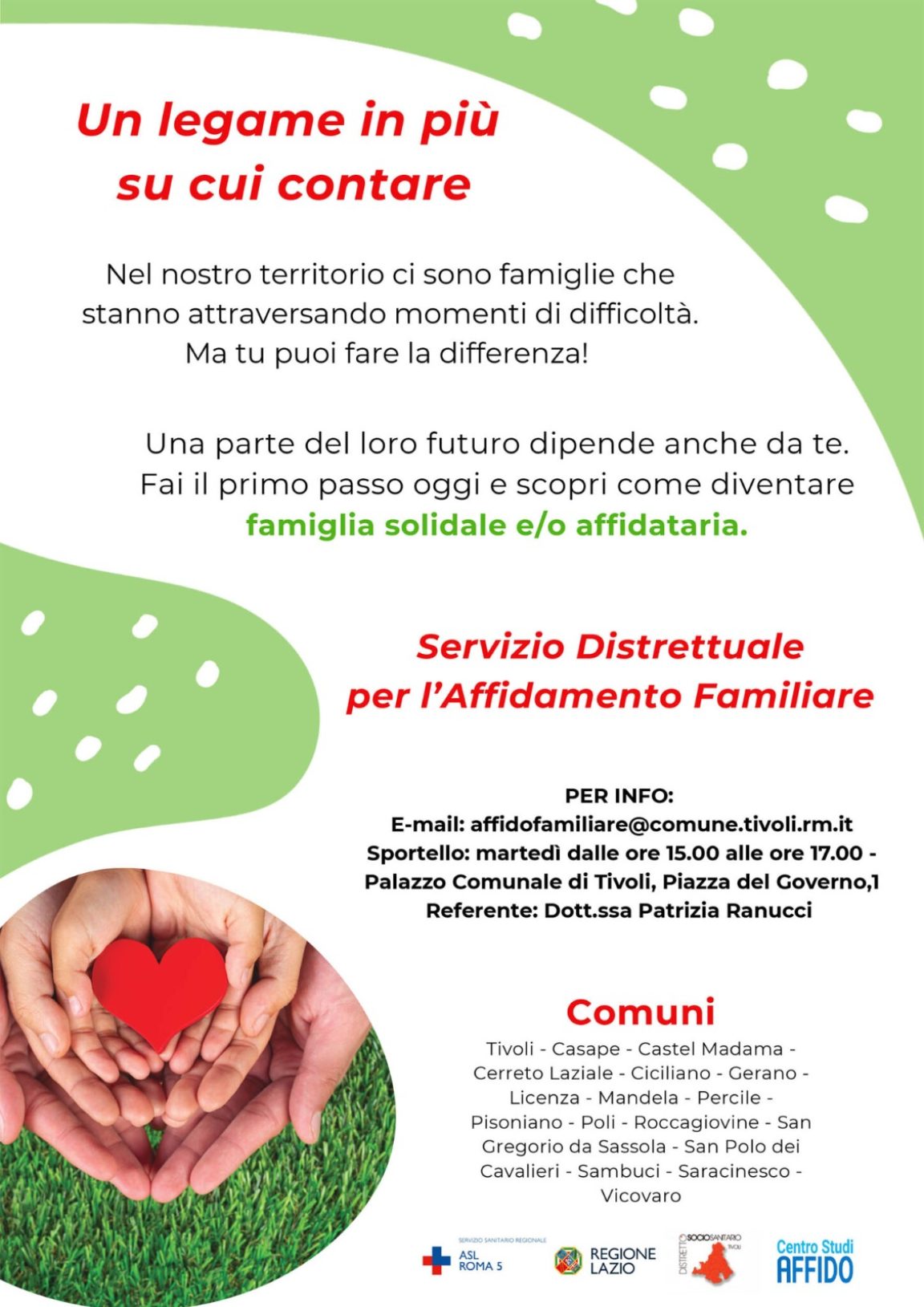 Oggi l’équipe dell’Affidamento Familiare sarà presente presso l’area mercatale di Tivoli, per offrire informazioni, ascolto e orientamento ai cittadini interessati a conoscere da vicino questa importante opportunità di solidarietà.