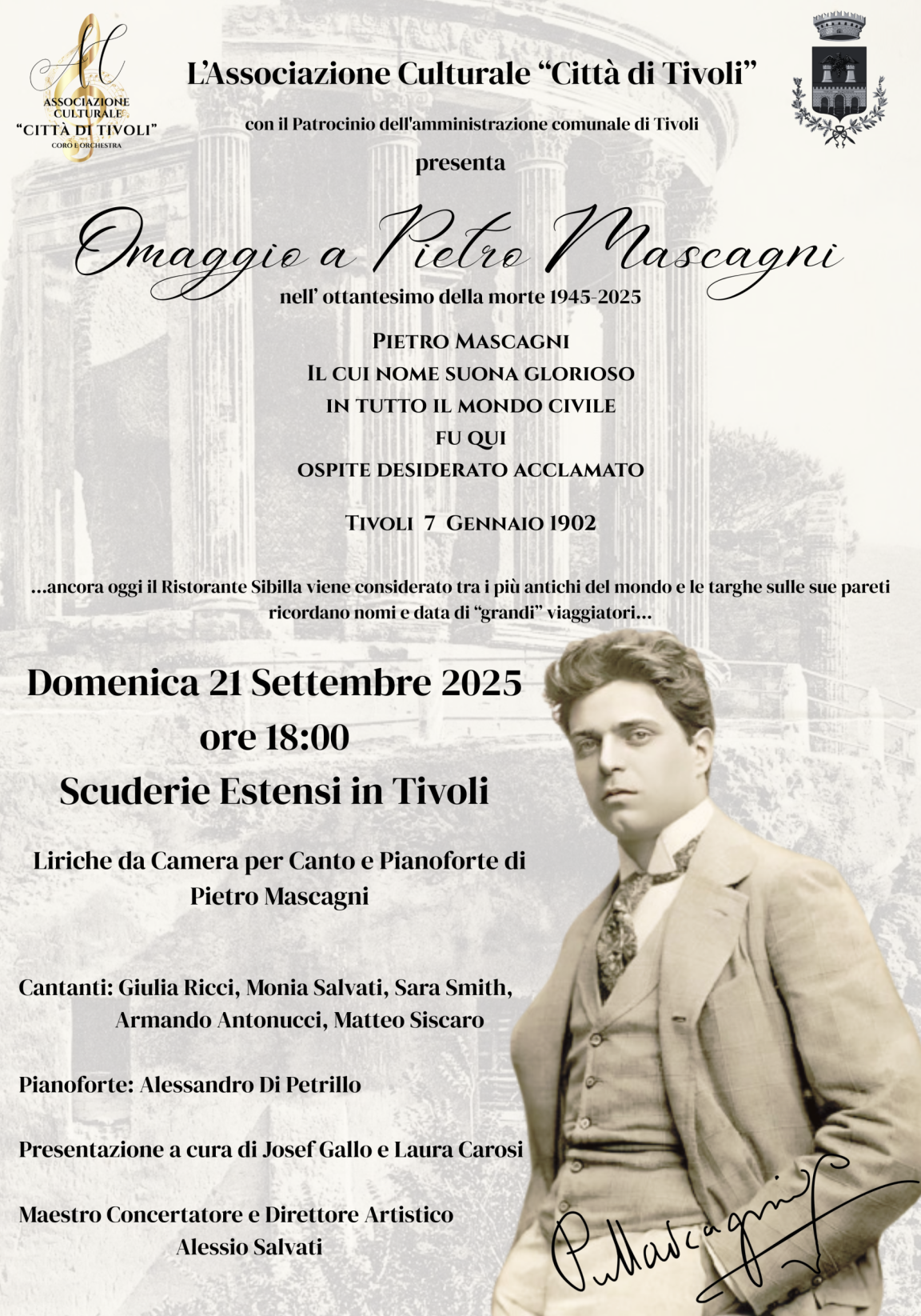 L’Associazione Culturale “Città di Tivoli” proporrà un omaggio al compositore che fu ospite accolto e celebrato a Tivoli nel 1902.