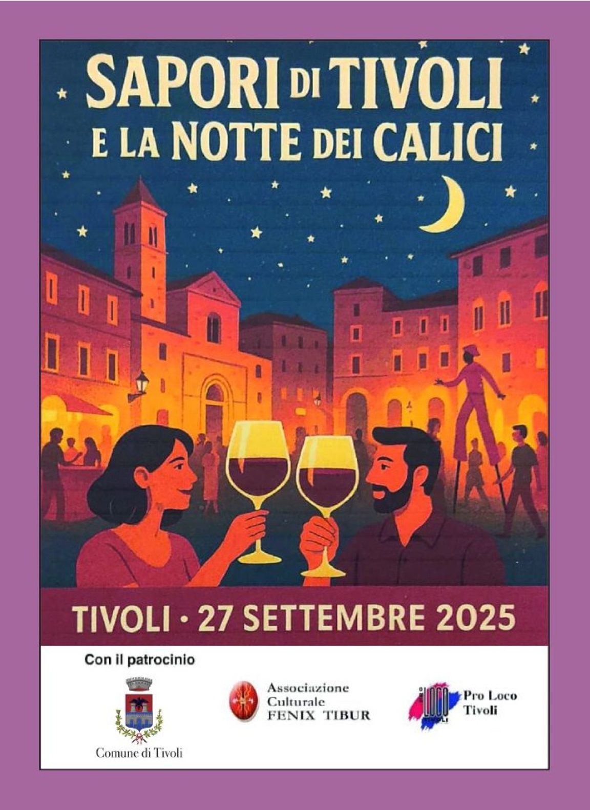 Le piazze e le strade del centro storico di Tivoli si animeranno con i profumi, i suoni e i colori di uno degli eventi più attesi dell’autunno: “Sapori di Tivoli e la Notte dei Calici”.