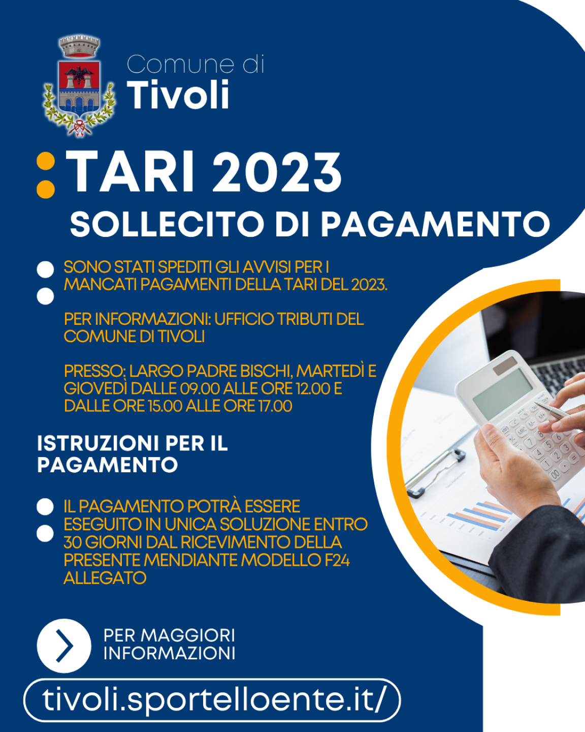Sono stati spediti gli avvisi di pagamento relativi alla TARI 2023 per le posizioni che risultano non regolarizzate.