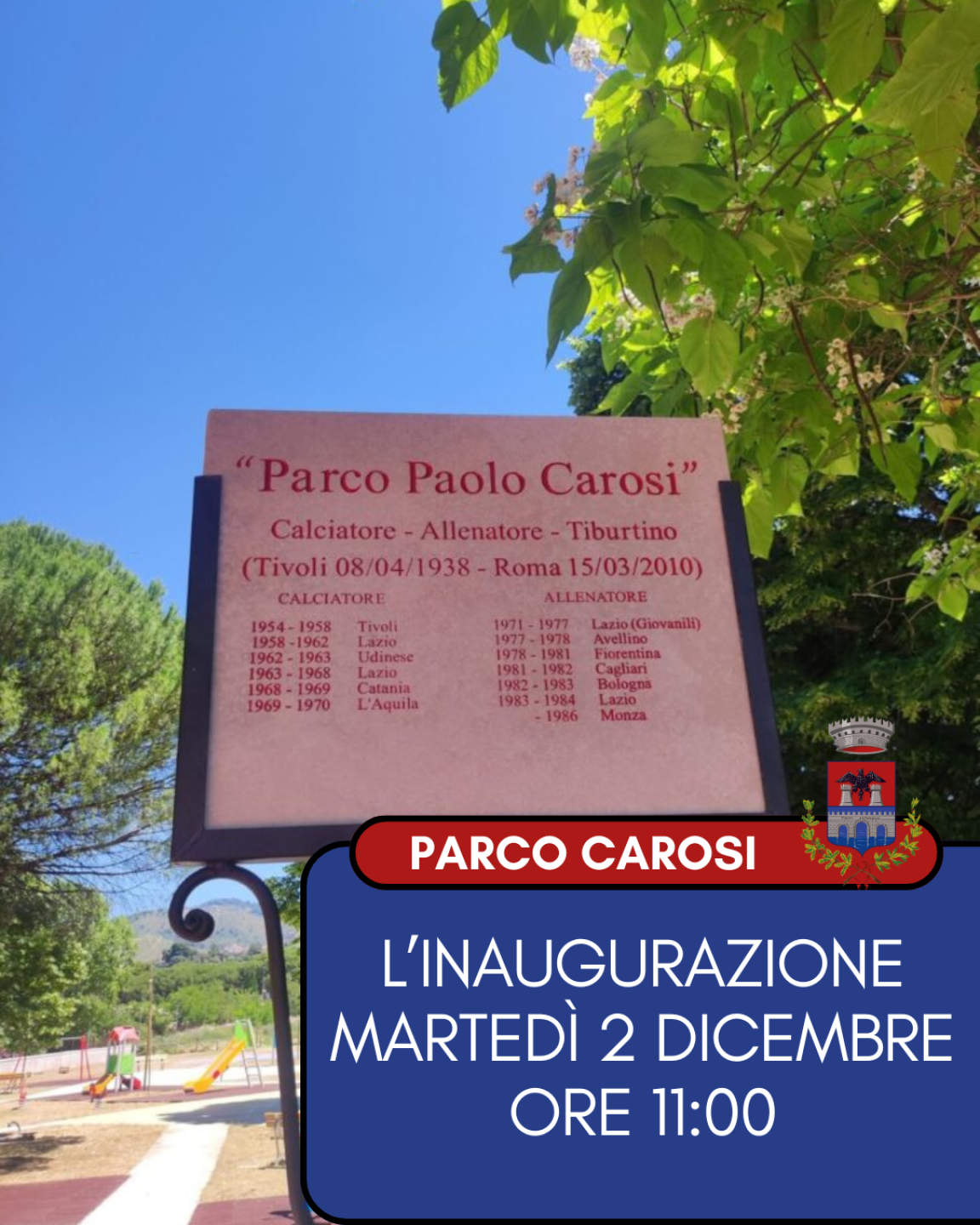 Domani, martedì 2 dicembre, inaugureremo il Parco “Paolo Carosi”, già Parco dell’Adrianella, a Villa Adriana.