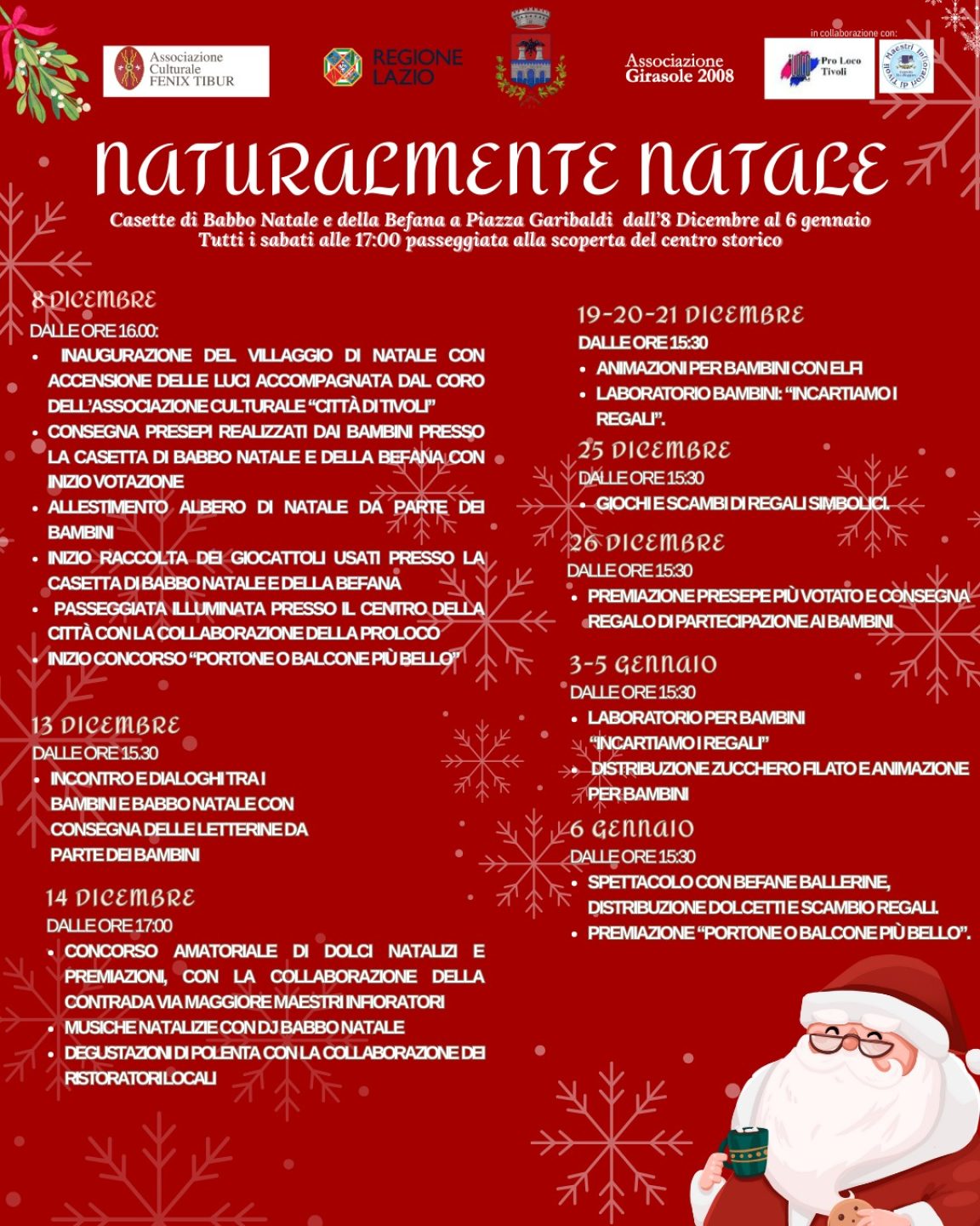 L’Amministrazione ha lavorato insieme alle associazioni locali per dare continuità alle tradizioni, dal concorso dei presepi al mercatino dei dolci, dalle passeggiate nel centro storico alle iniziative dedicate alla solidarietà. Babbo Natale e la Befana saranno presenti in più giornate, pronti ad accogliere i bambini.