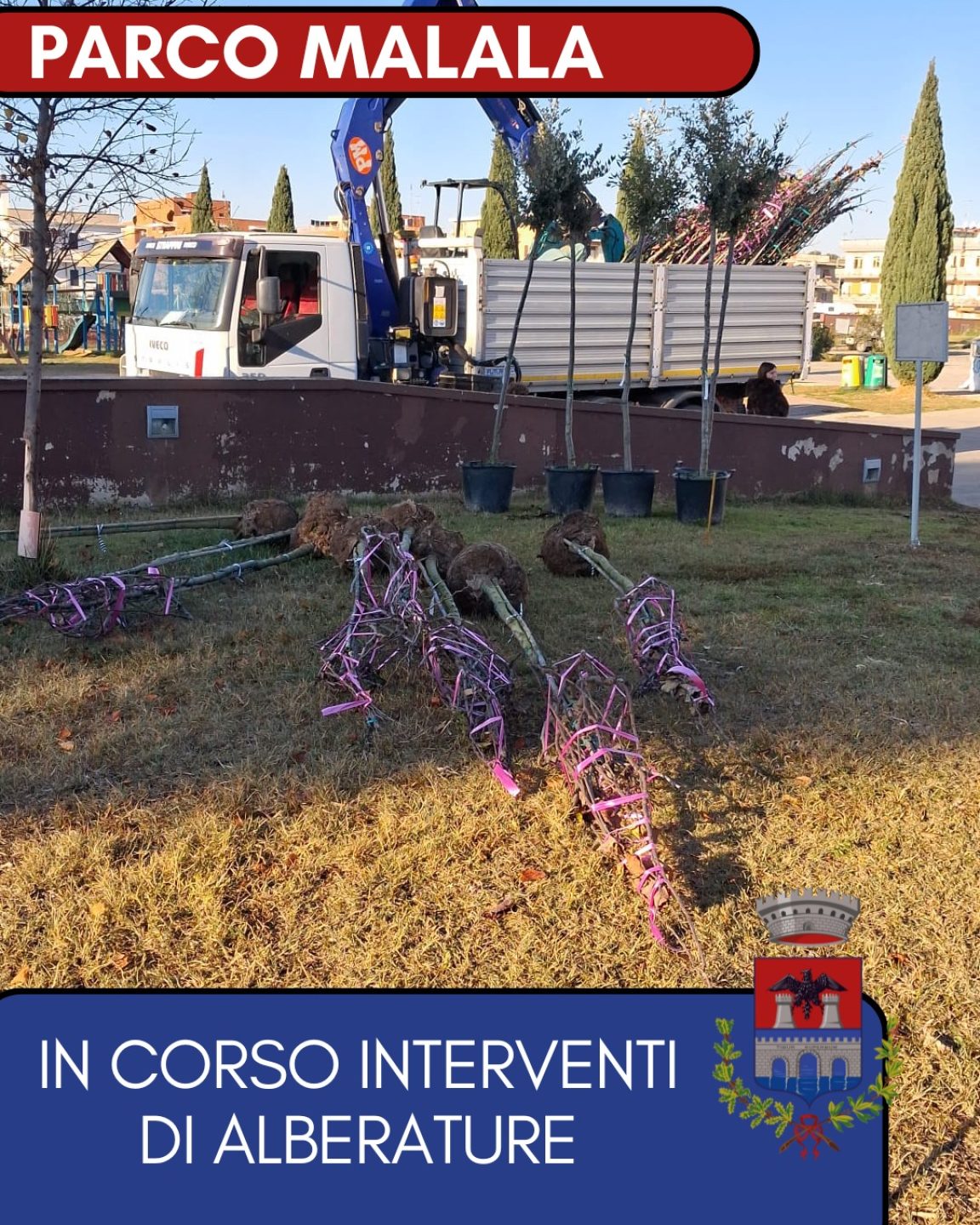 Si comunica che fino a venerdì 12/12/2025, presso il sito del Parco “Il sogno di Malala” verranno eseguiti interventi di messa a dimora di sessanta nuovi esemplari di alberature, nell’ambito del Progetto Ossigeno promosso dalla Regione Lazio, al quale il Comune di Tivoli ha aderito ed è risultato ammesso in graduatoria.