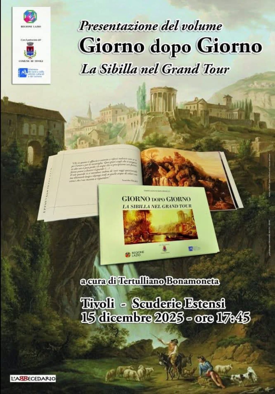 Il Comune di Tivoli invita la cittadinanza alla presentazione del volume “Giorno dopo Giorno. La Sibilla nel Grand Tour”, nuova opera di Tertulliano Bonamoneta, dedicata a Tivoli e al ruolo che la città ha avuto nel Grand Tour.