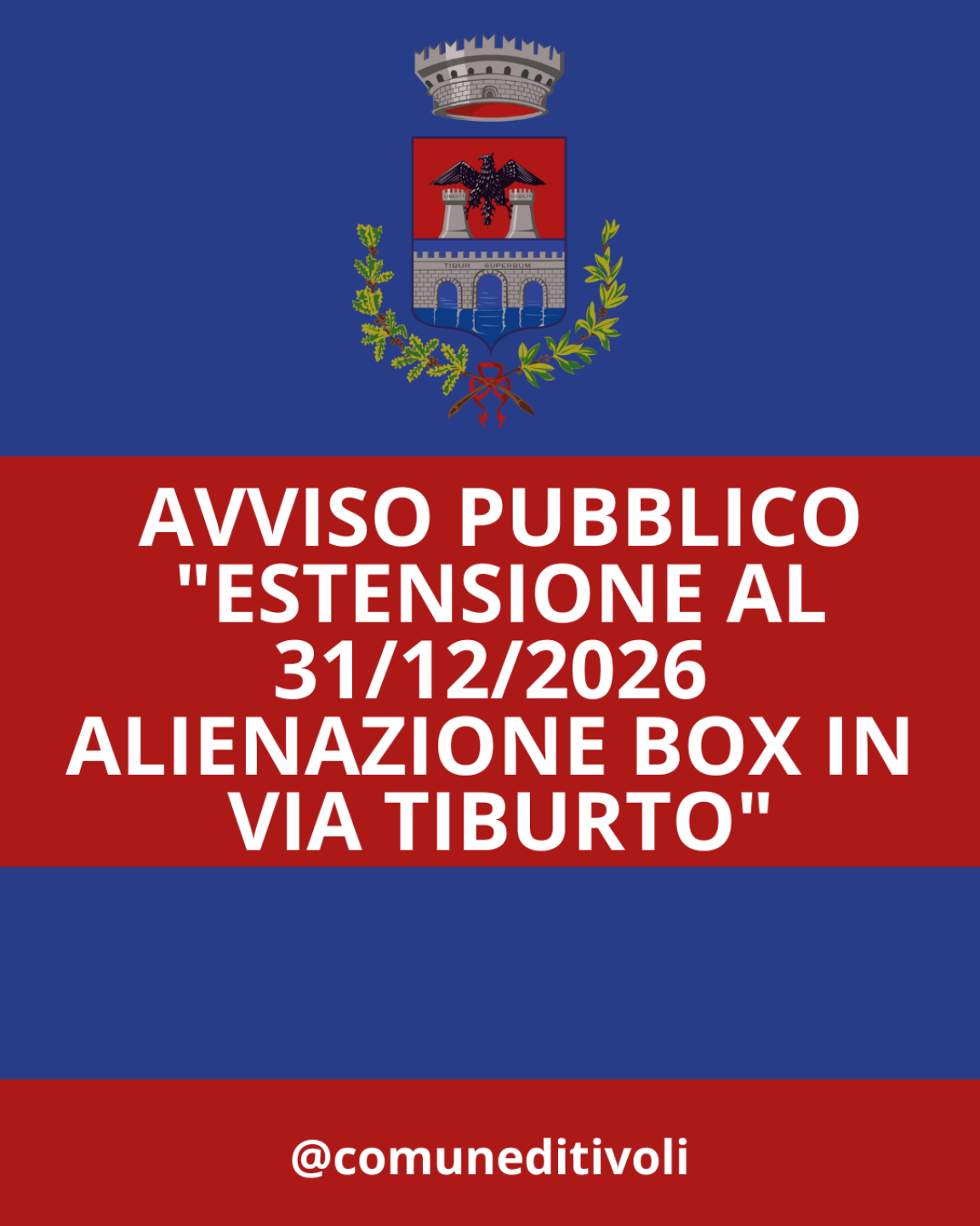 AVVISO PUBBLICO: “ESTENSIONE AL 31/12/2026 ALIENAZIONE BOX IN VIA TIBURTO”