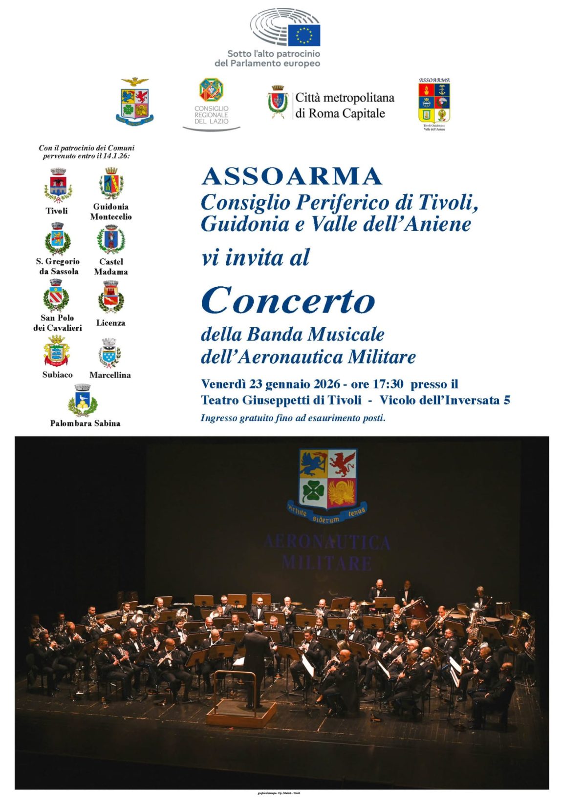 Venerdì 23 gennaio 2026, alle ore 17.30, il Teatro Giuseppetti ospiterà il concerto istituzionale della Banda Musicale dell’Aeronautica Militare, gratuito e aperto a tutta la cittadinanza.