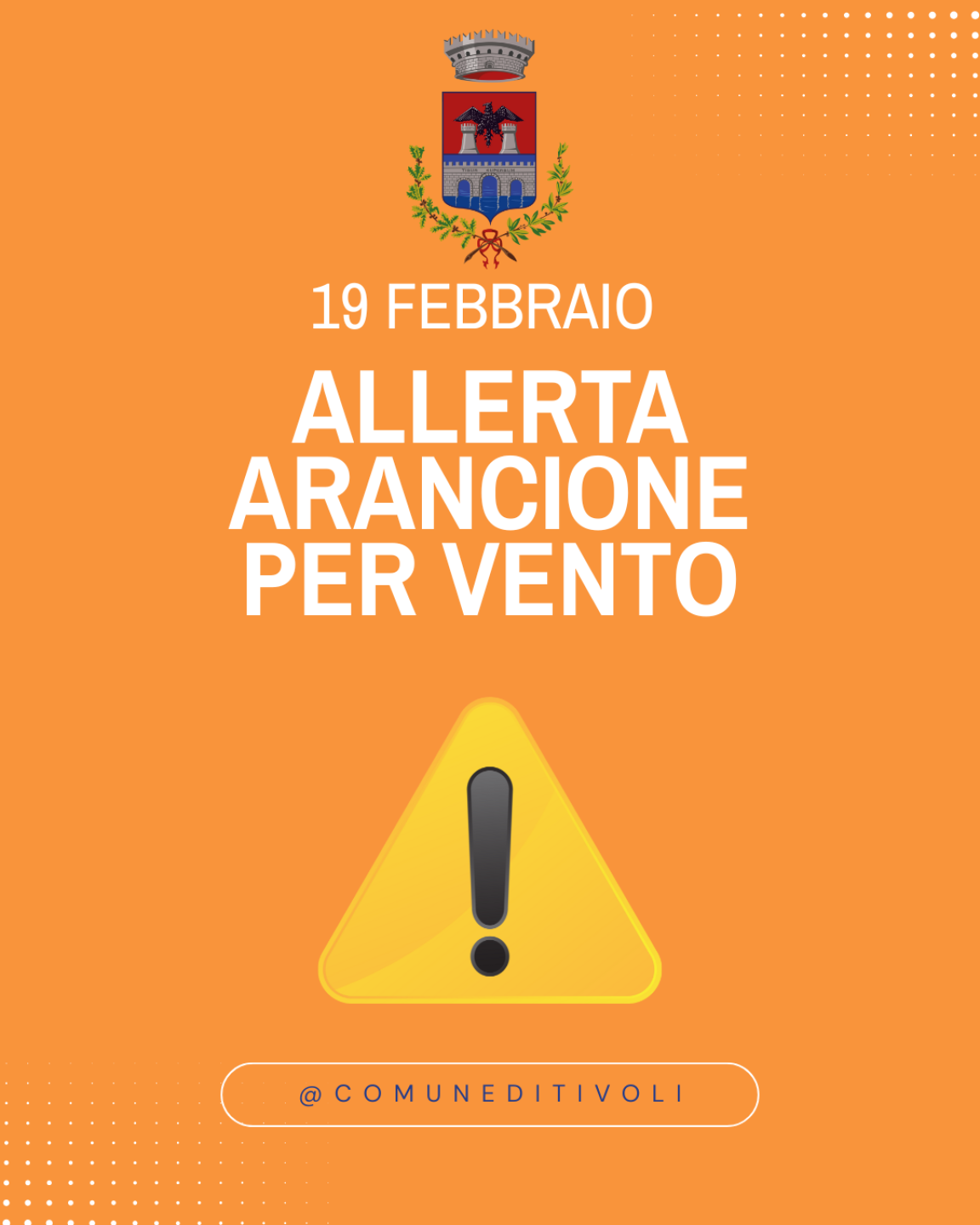 Il Centro Funzionale Regionale ha comunicato l’allerta arancione per vento, con possibili raffiche di forte intensità, nella Città di Tivoli, per giovedì 19 febbraio.