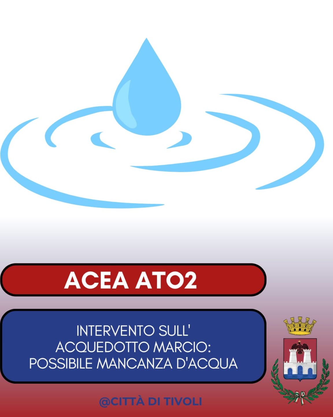 Si informa che, come comunicato da Acea Ato2, a causa di un danno improvviso rilevato sull’Acquedotto Marcio, è necessario intervenire immediatamente con una riparazione non differibile.