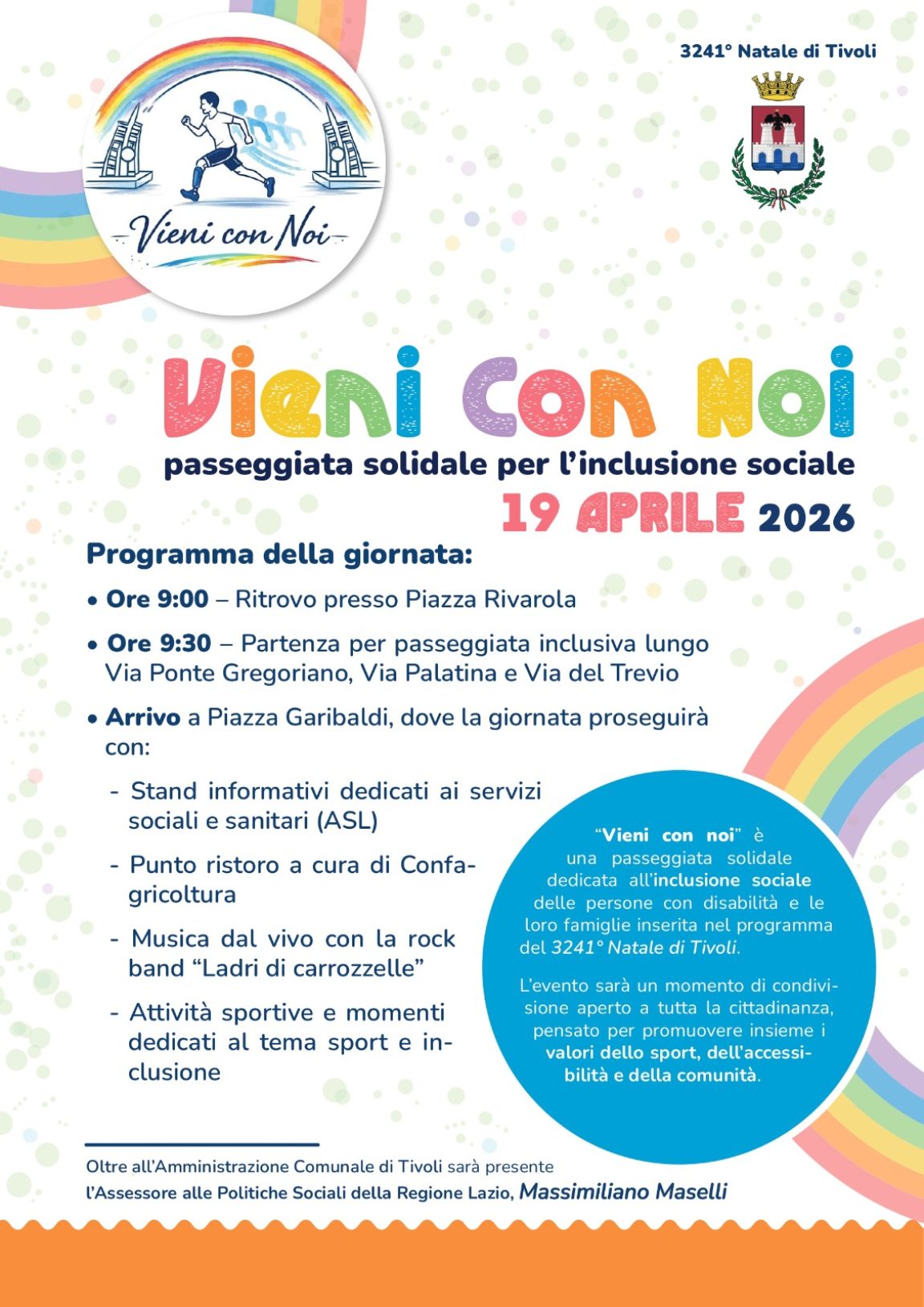 Domenica 19 aprile la Città di Tivoli cammina insieme per l’inclusione.