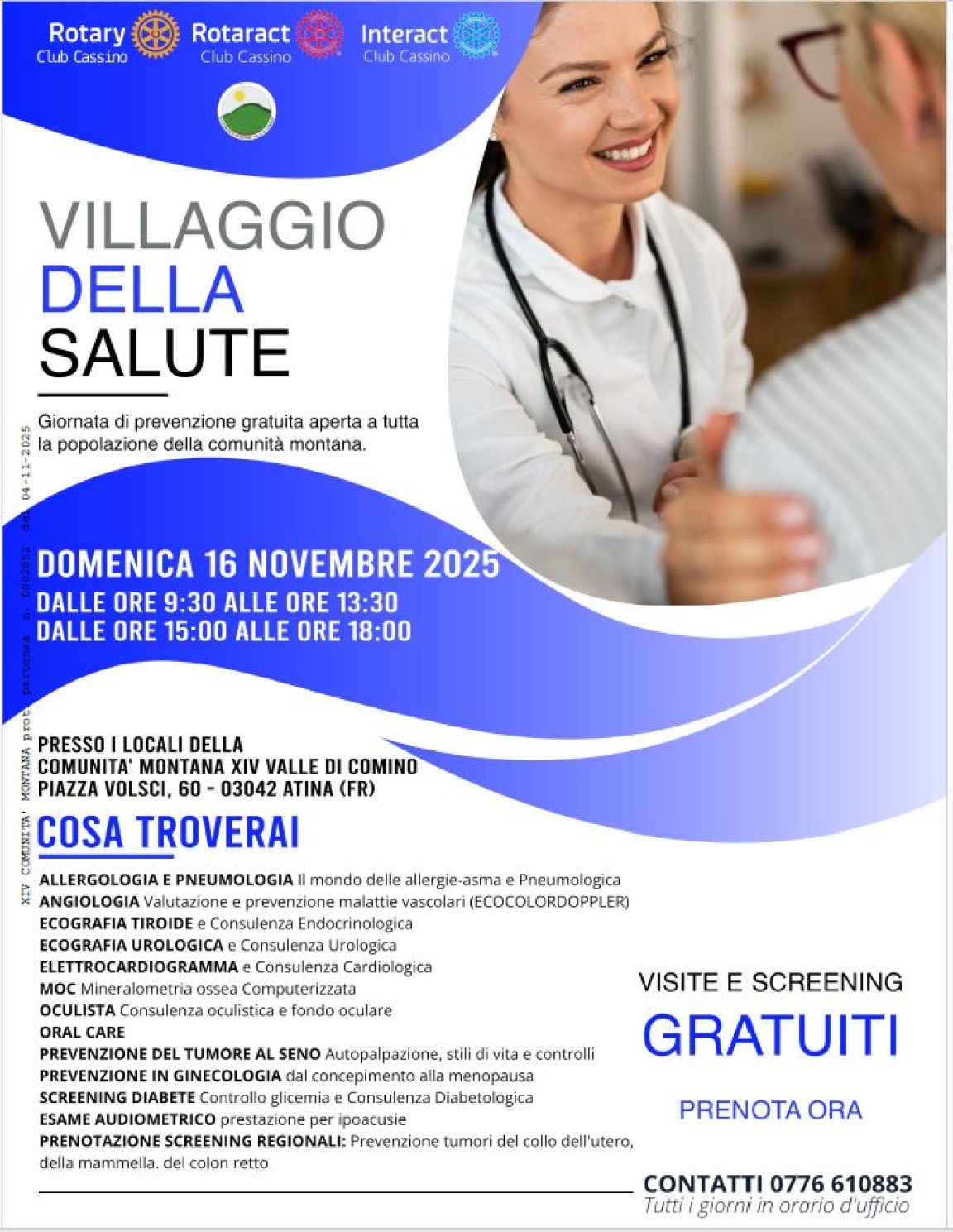 La XIV Comunità Montana Valle di Comino organizza una giornata di prevenzione gratuita aperta a tutta la popolazione .